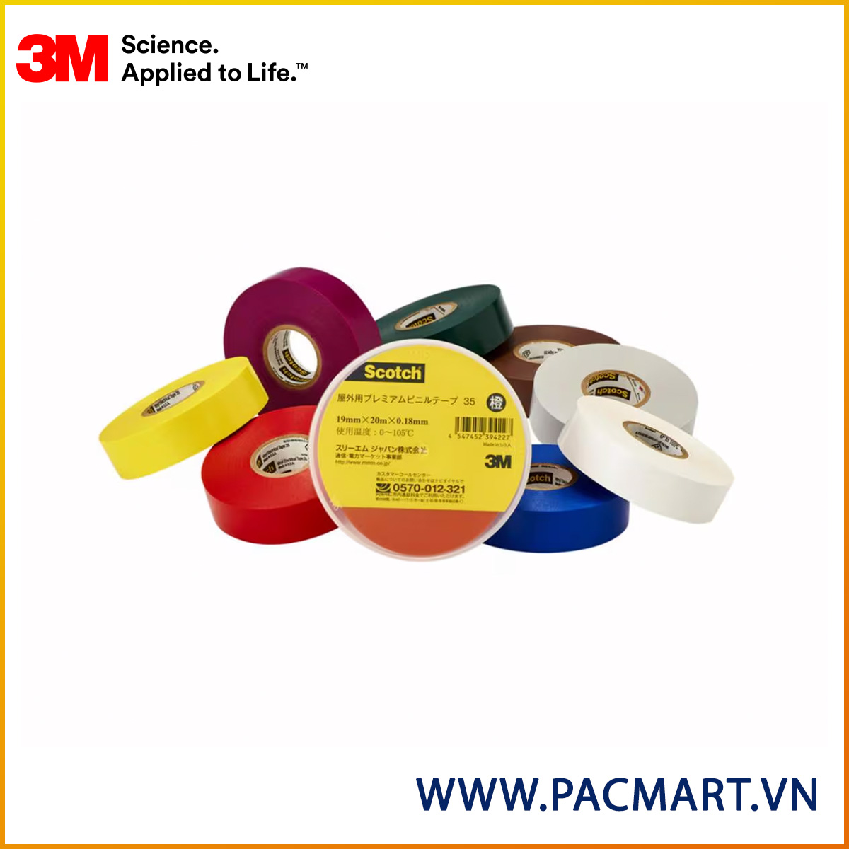 Băng Keo Điện 3M Scotch 35 là băng dính PVC màu dày 7-mil (0.18mm). Sản phẩm có dải nhiệt độ hoạt động rộng từ 32–220°F (0–105°C). Tính cách điện và cơ học vượt trội giúp băng Scotch 35 có thể sử dụng trong việc cách điện cách mối nối, nhận dạng pha, đánh dấu màu sắc của các động cơ, hệ thống đường ống và có thể đánh dấu khu vực an toàn